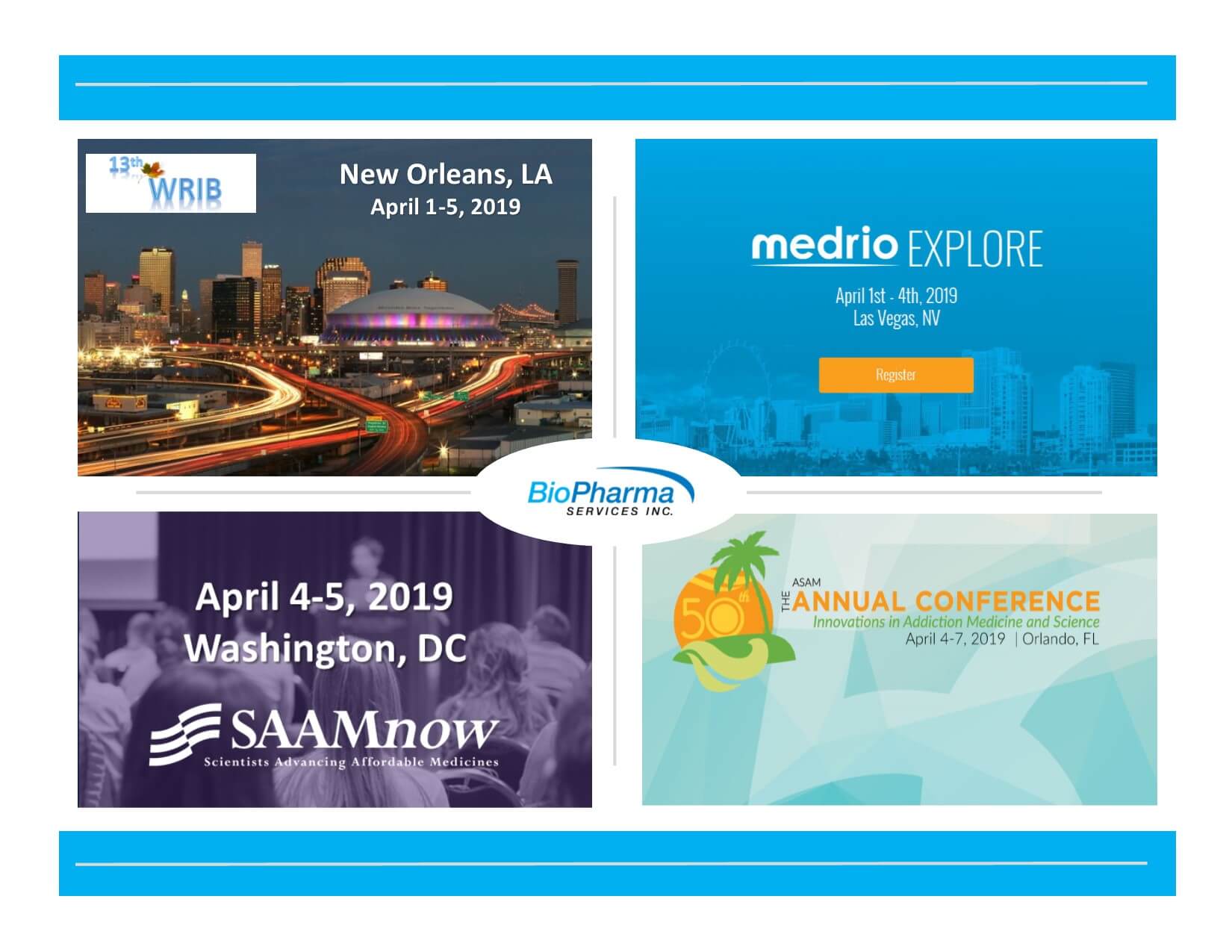 Email info@biopharmaservices.com to set up a meeting at any of these conferences. Review our full conference schedule at https://www.biopharmaservices.com/draft/conference/