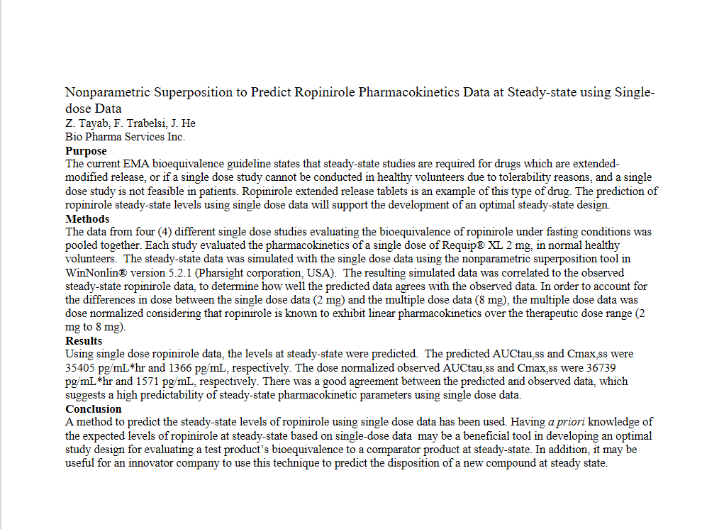 Trabelsi F, Gharavi N, Kalovidouris M, Nikolaidou M. Steady-state Bioequivalence study of two quetiapine prolonged-release 400 mg tablet formulations in healthy male and female subjects under fasting. Int J Clin Pharmacol Ther. 2016,;54:732-742.
