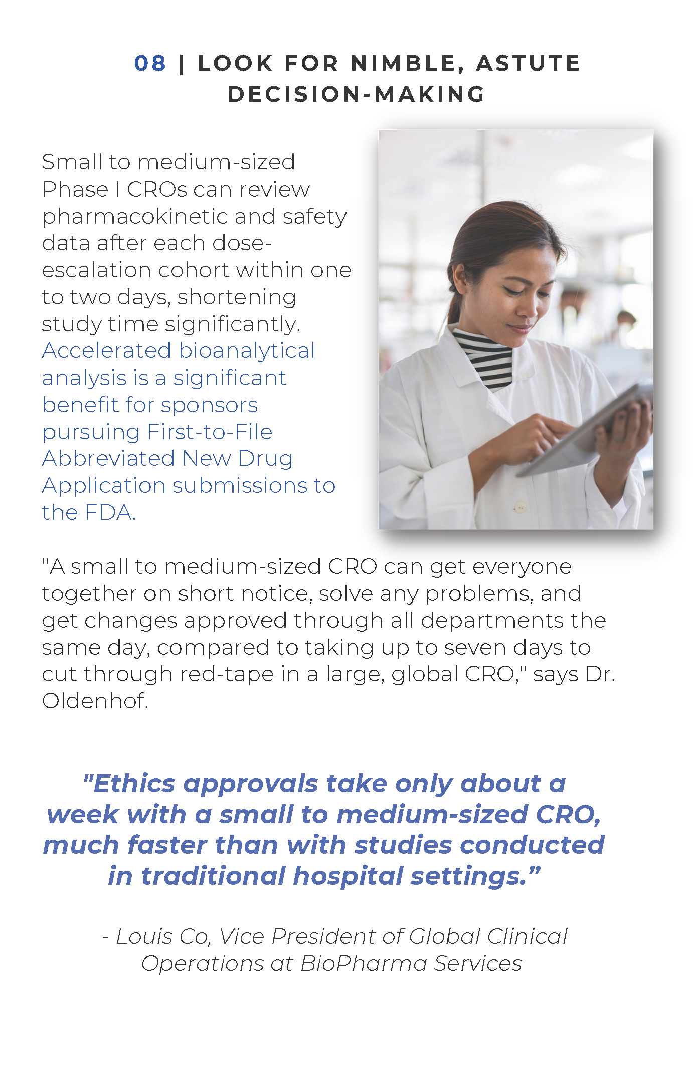 In this high-stakes sector, small and medium biotech companies with novel compounds must move quickly into Phase 1 clinical research. It is essential to design studies that collect the right data from the right participants using state-of-the-art, cost-effective methods. Small and medium biotech firms greatly benefit when placing trials with a Phase I CRO with a “can-do” attitude and a shared entrepreneurial spirit.