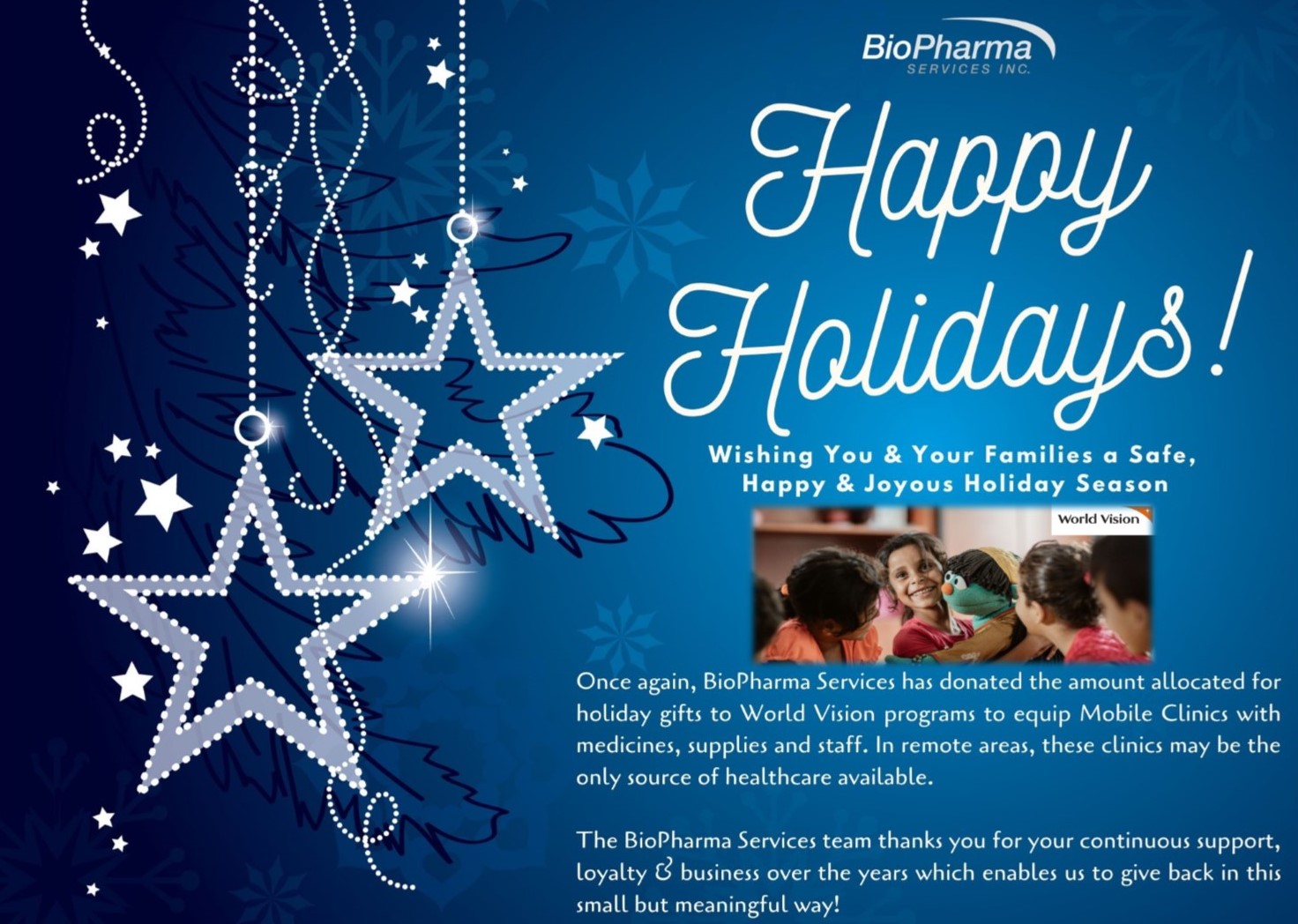 The BioPharma Services team wishes you and your families a safe, happy and joyous holiday season ahead!