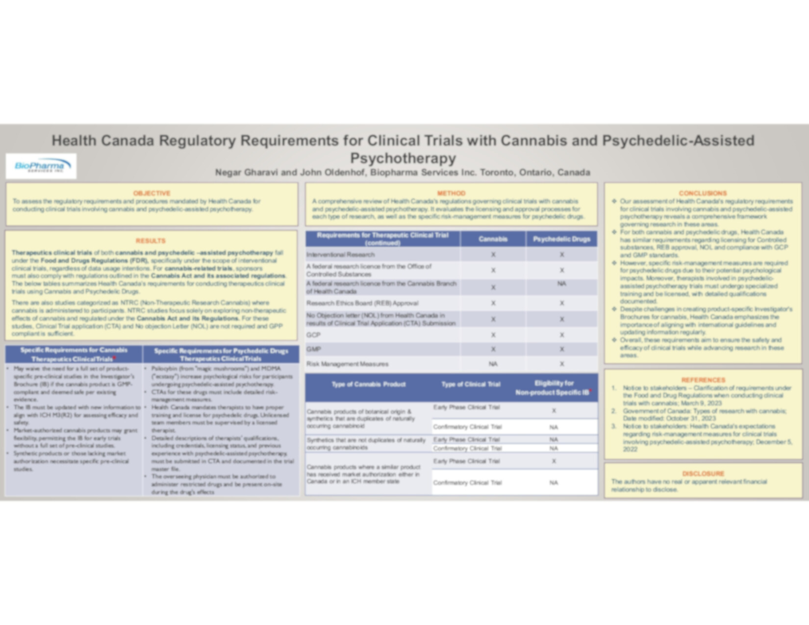 Health Canada Regulatory Requirements for Clinical Trials with Cannabis and Psychedelic-assisted Psychotherapy- BioPharma Services Poster_page-0002